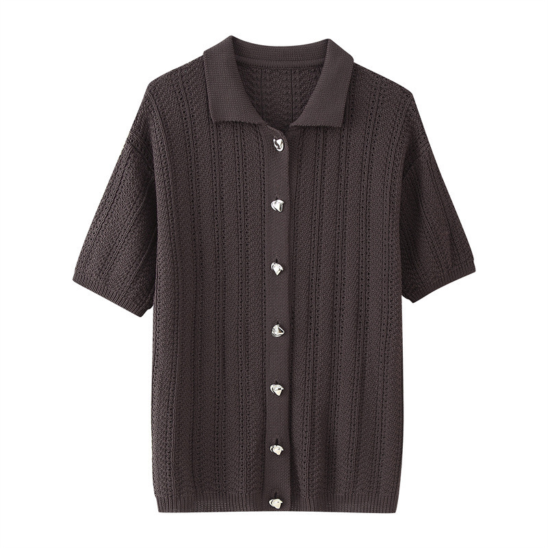 Fashion Texture Knitted Slim Straight Lapel Short Sleeve Trousers